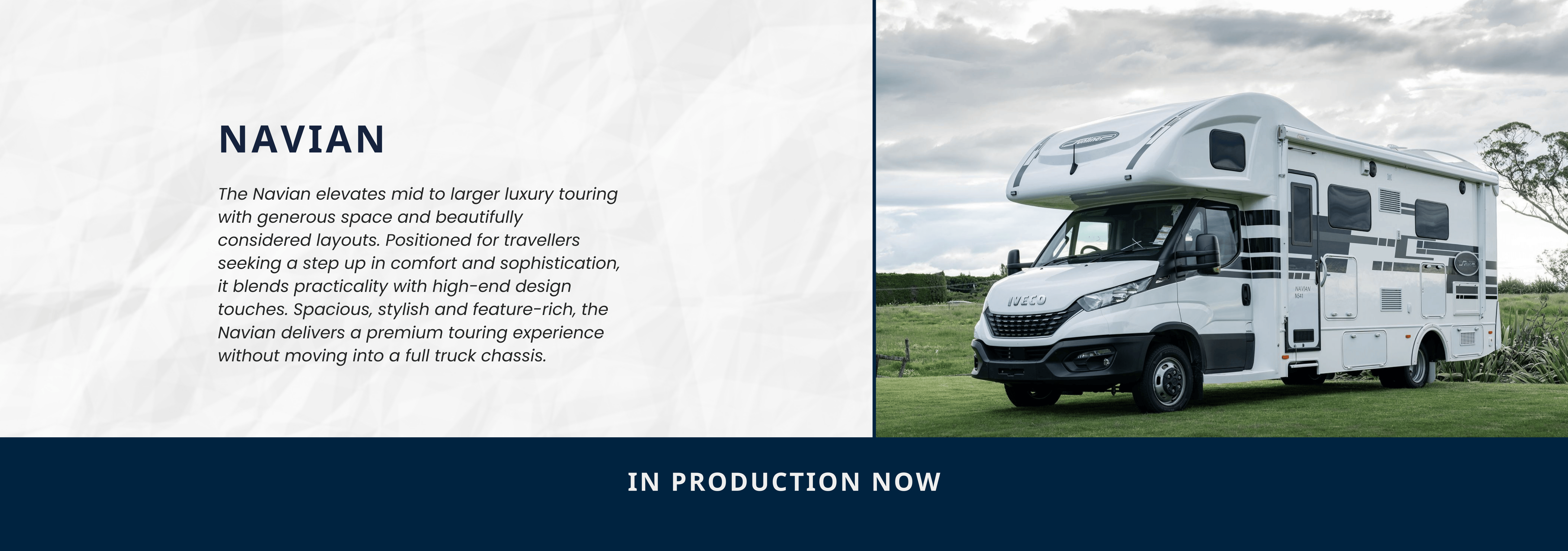 Positioned for travellers seeking a step up in comfort and sophistication, it blends practicality with high-end design touches. Spacious, stylish and feature-rich, the Navian delivers a premium touring experience without moving into a full truck chassis.
